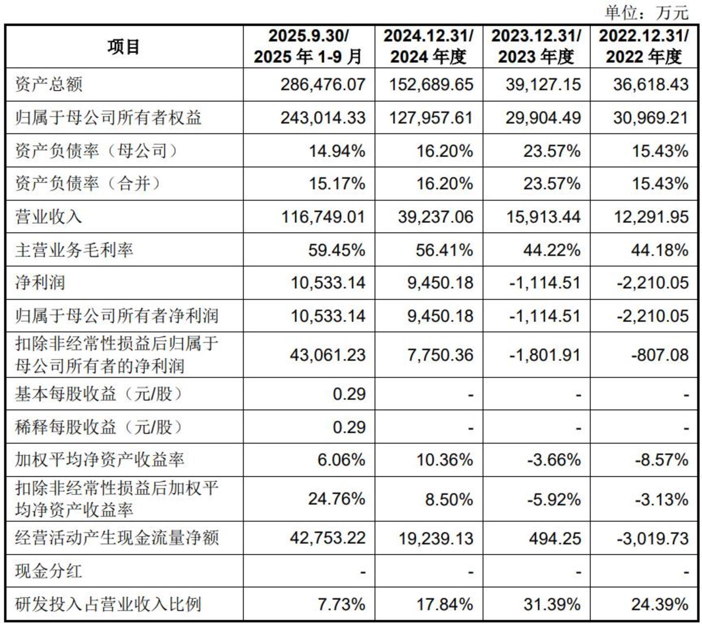 2025年则是爆发期,仅前三季度营收就达到11.67亿元,净利润约1.05亿元,扣非后归母净利润升至4.31亿元。